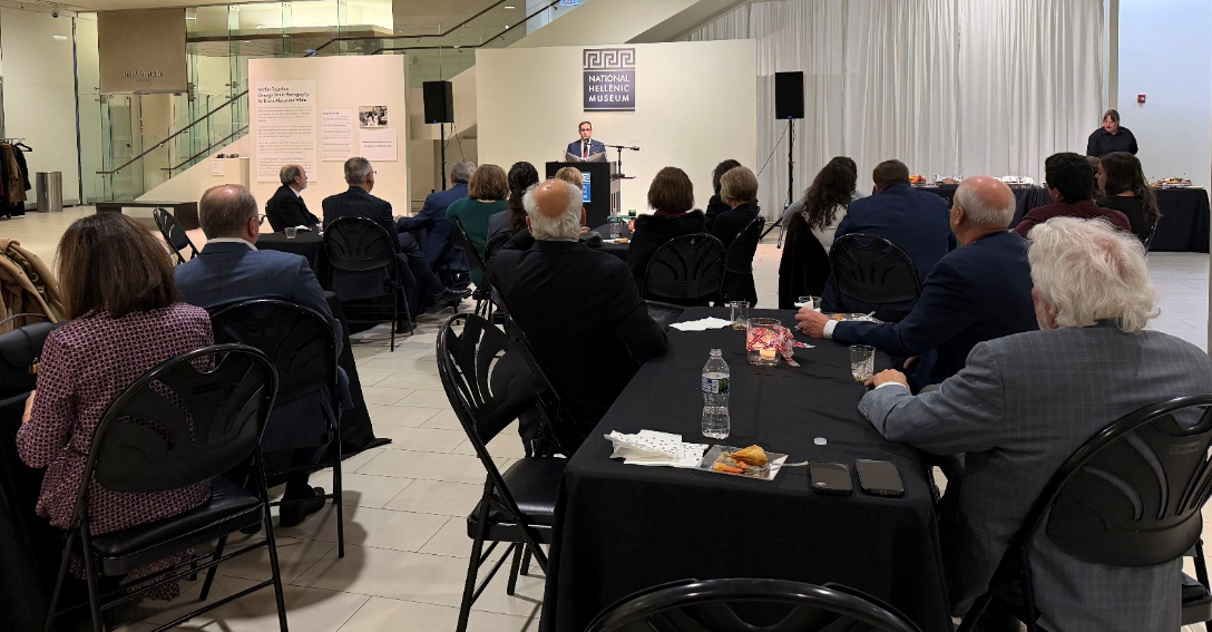 Regional Commander John G. Manos opened the event with a prayer, welcomed the guests, and thanked the National Hellenic Museum for their continued support for the Archons. He reviewed recent Archon activities, including participation in Archon Sunday and the St. Andrew’s Vespers Services in Chicago and stressed the importance of local Archons to support both the National and local programs. He also noted the involvement of National Archon officers in the historic visit of Pope Leo XIV to the Phanar and the pilgrimage to Nicaea.