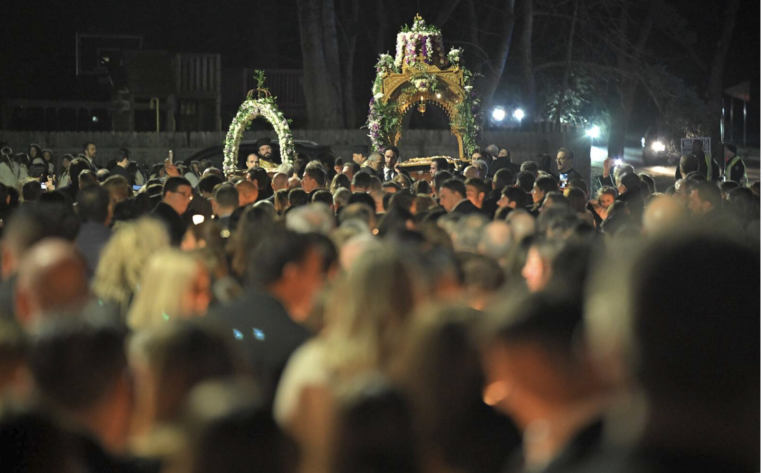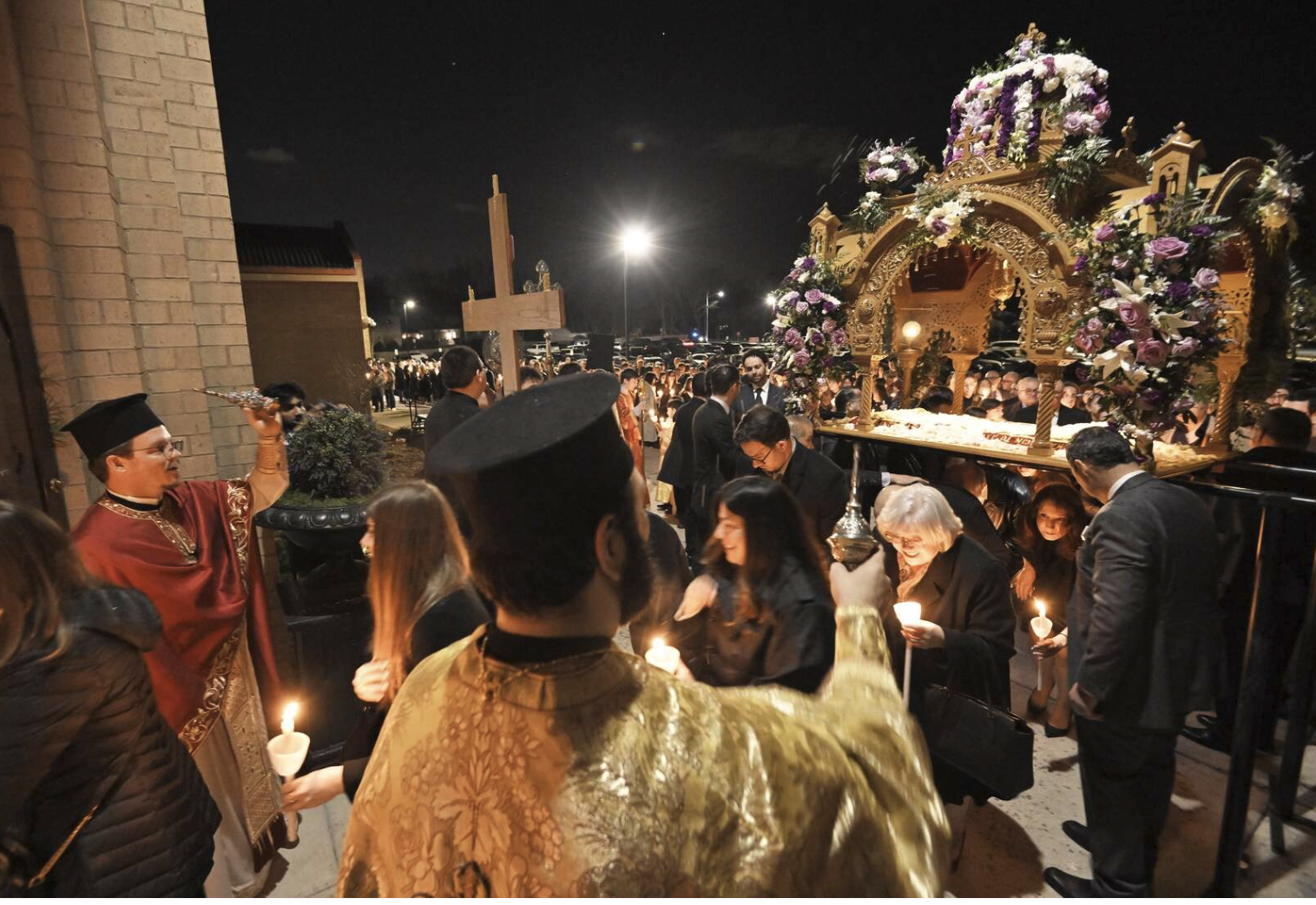 About 1,500 people followed a Epitaphios, a representation of the tomb of Christ, through the parking lot of St. Nectarios Greek Orthodox Church in Palatine during the traditional Good Friday service. John Starks/jstarks@dailyherald.com