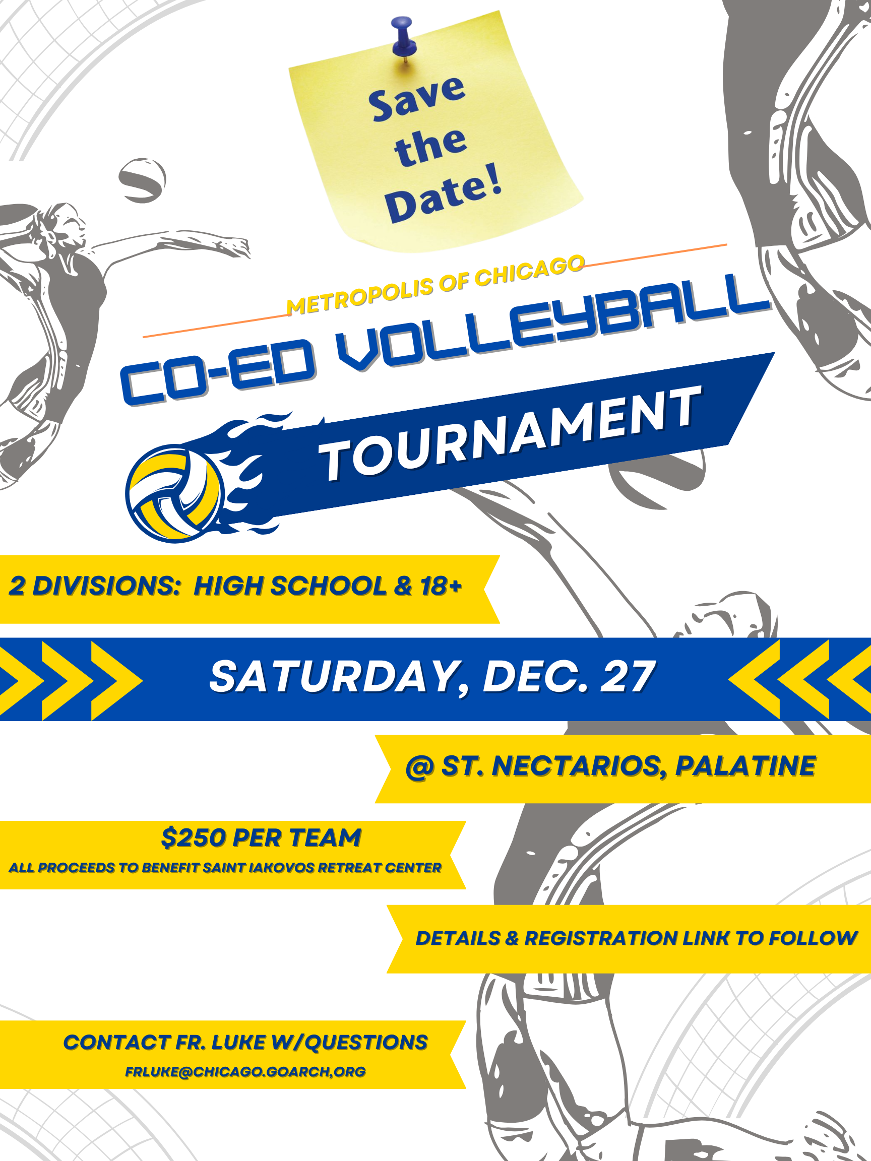 St. Nectarios - Palatine, IL 133 S Roselle Rd., Palatine, IL, United StatesRegister here:https://docs.google.com/forms/d/e/1FAIpQLSegsXpQMpST10YF1eQqQJkUWnKYKTLVtVKrcX4BBH2mdCN2Kg/viewform Pay here: https://www.gosirc.org/volleyball-tournament